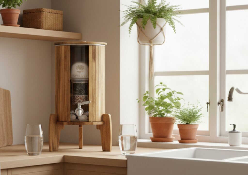 Der Standfilter KIARA Akazie mit VITA PLUS® Filter-Set steht für eine neue Ära der Wasserfiltration. Außen natürliche Eleganz, innen modernste Technologie. Ein Standfilter, der Freude macht und den Alltag bereichert.